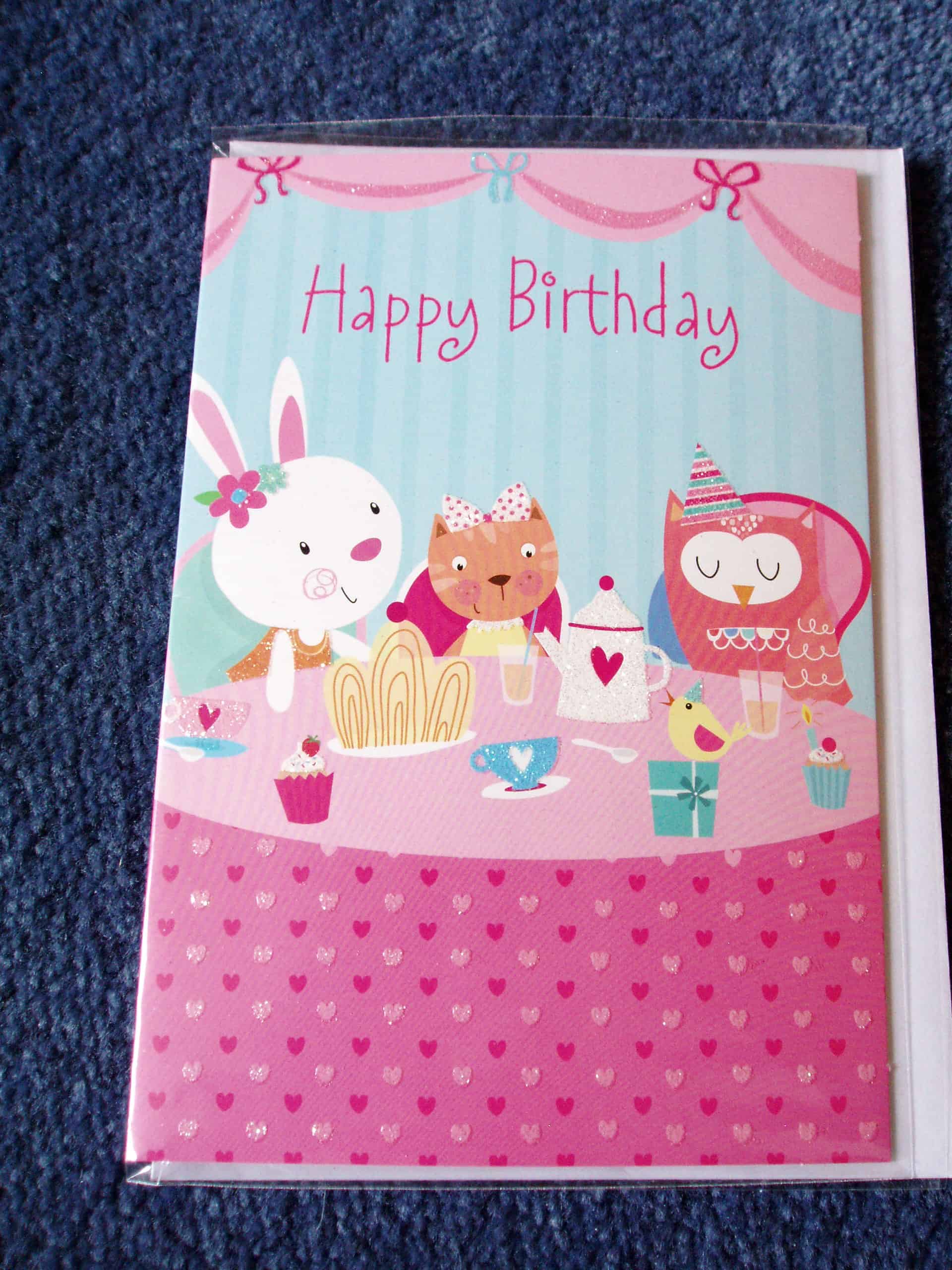 Approximately 13 x 19cm. “Happy Birthday” Message inside reads “Get ready for surprises and treats all just for you, have a lovely birthday with happy wishes, too. HAVE FUN ON YOUR BIRTHDAY”